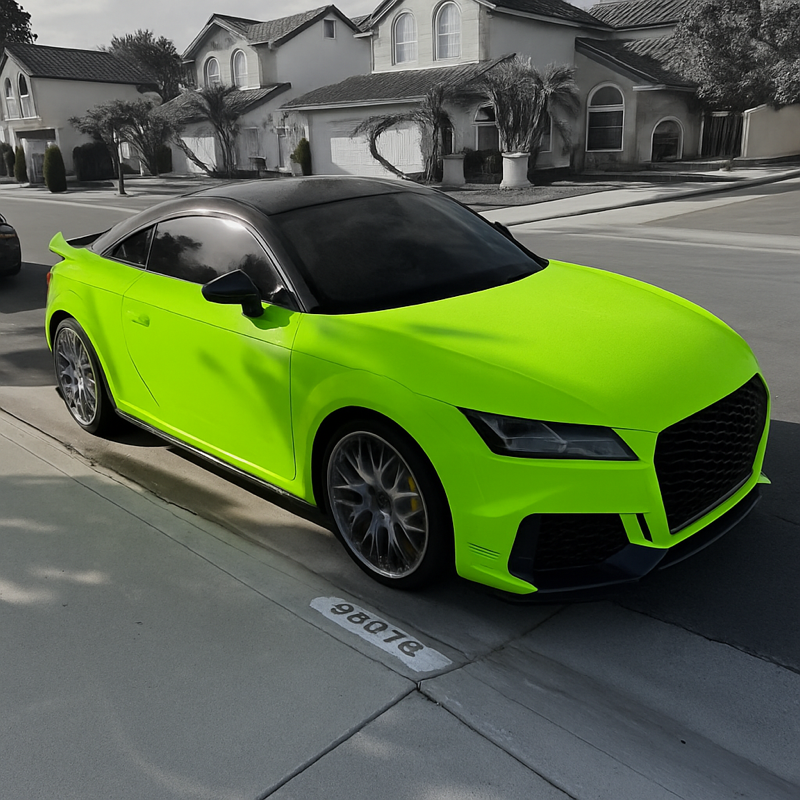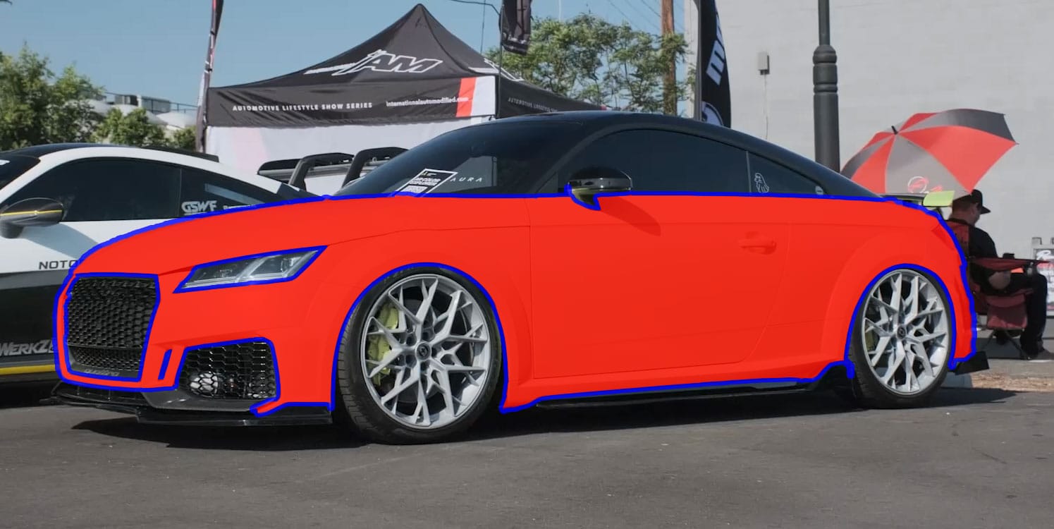 We built a TensorFlow-based segmentation model fine-tuned on this exact car (an Audi TT RS) and its color, Ultra Gloss Fluro Yellow. We used hundreds of labeled reference frames shot from multiple angles and trained the model to isolate paint from trim, glass, and wheels with pixel-level precision.